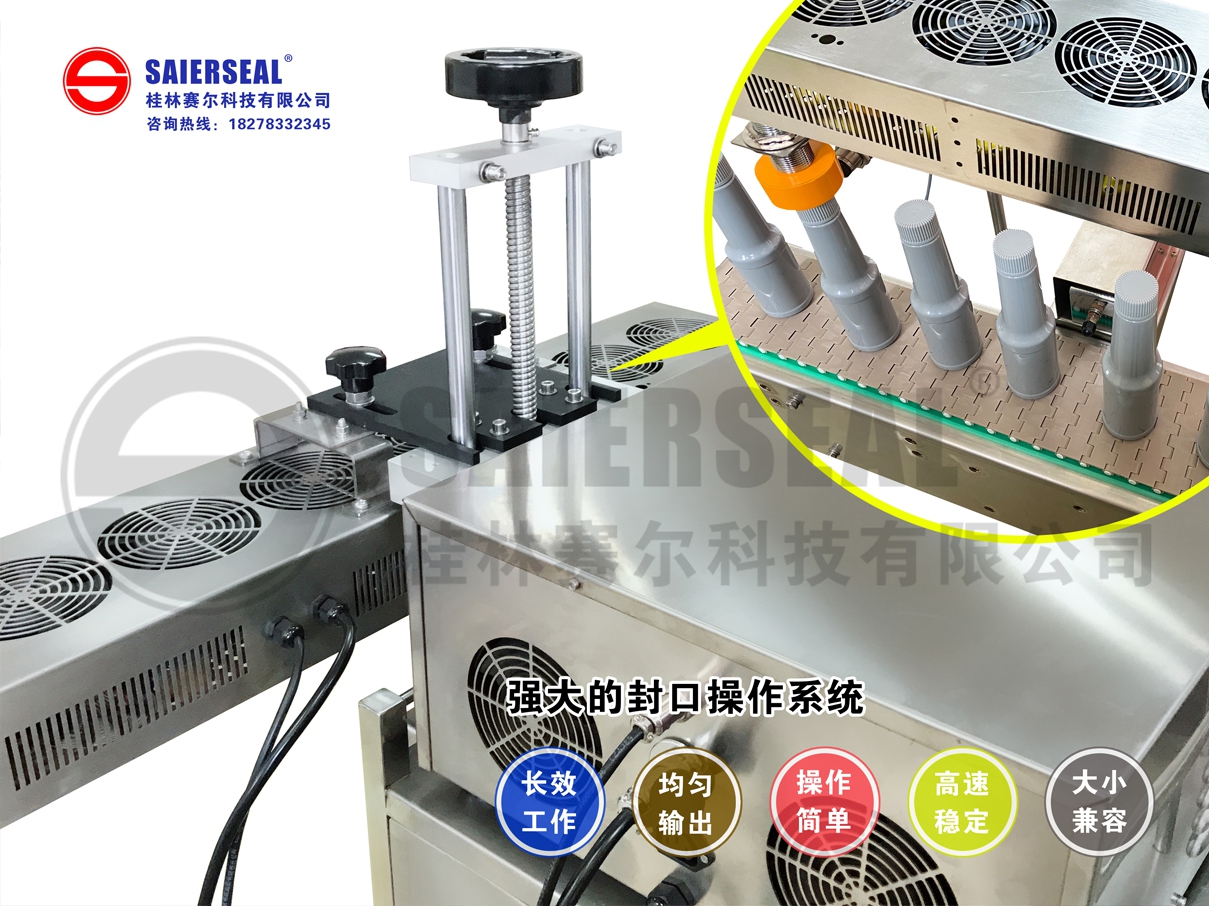 技術(shù)定位:本機(jī)是一款風(fēng)冷式大功率電磁感應(yīng)鋁箔封口機(jī),針對(duì)醫(yī)藥,獸藥制劑生產(chǎn)特點(diǎn)進(jìn)行研發(fā),它滿足于現(xiàn)代化高速生產(chǎn)線的連續(xù)封口要求,功能先進(jìn),操作簡(jiǎn)單,可適應(yīng)不同灌裝物料的性狀特點(diǎn)進(jìn)行功率調(diào)節(jié),達(dá)到牢固且美觀的產(chǎn)品密封目的。